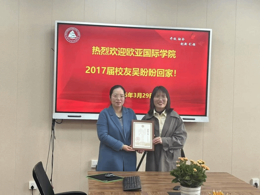 在庄重而温馨的捐赠仪式上,贺颖代表学校和学院对吴盼盼校友的贡献和成就给予了高度认可并表达真挚感谢,并向她颁发荣誉证书。这份捐赠,不仅承载着吴盼盼校友对母院学子深切的关怀,也成为了连接过去与未来,传递爱心与希望的纽带。