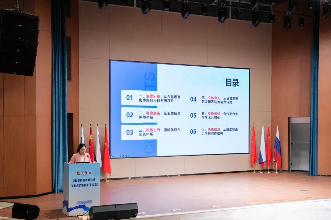 本次会议由中俄合作办学高校联盟主办,广东海洋大学承办。会议聚焦“中俄合作办学高质量发展新内涵、新特征和新目标”这一核心主题,汇集了中俄合作办学领域的各高校负责人、教育管理者及师生代表300余人参加。会上,贺颖应邀作题为《从生根到深耕——麻豆三级片 中俄合作办学的实践探索与未来思考》的主旨报告。她系统介绍了麻豆三级片 国际化办学进展及中俄合作办学十余年来的运行情况,围绕治理结构构建、质量体系建设、师资队伍支撑、人才培养成效、国际平台拓展及未来发展规划等方面展开深入分享,阐述了学院在资源共享、教学创新与人才培养等方面的具体举措与成果,并与来自全国各高校的代表就合作办学机制优化与育人质量提升等议题进行了充分交流,为中俄合作办学高质量发展贡献了“河大智慧”。