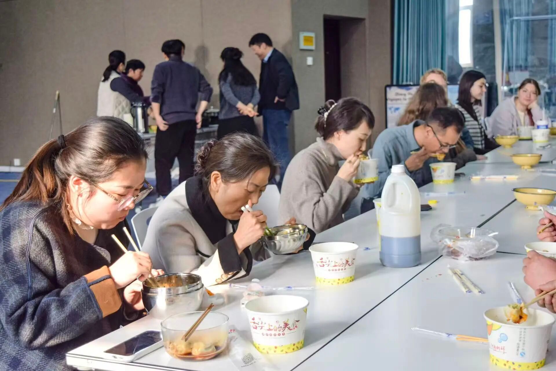 外籍教师与欧亚师生齐聚一堂,共同体验冬至吃饺子的乐趣。当热气腾腾的饺子端上桌时,大家共同品尝这份美味,也在交流中感受到跨越文化的温情与理解。
