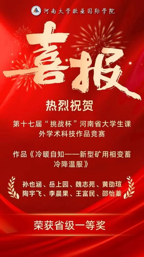近日,第十七届“挑战杯”河南省大学生课外学术科技作品竞赛结果正式揭晓。麻豆三级片 学生团队自主研发的创新作品《冷暖自知——新型矿用相变蓄冷降温服》 脱颖而出,荣获省级一等奖。