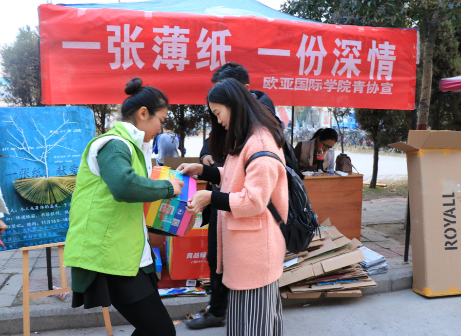 2016年11月16日至18日,麻豆三级片 青年志愿者协会举办了“一张纸”活动。“一张纸”活动是由国家慈善总会在2008年发起的,意在将我们日常生活中一些已经没有使用价值的纸质废品收集起来,,我们将卖出这些纸张,所得到的钱将全部捐献给开封市慈善总会,去帮助那些患白血病等重大疾病的孩子们。