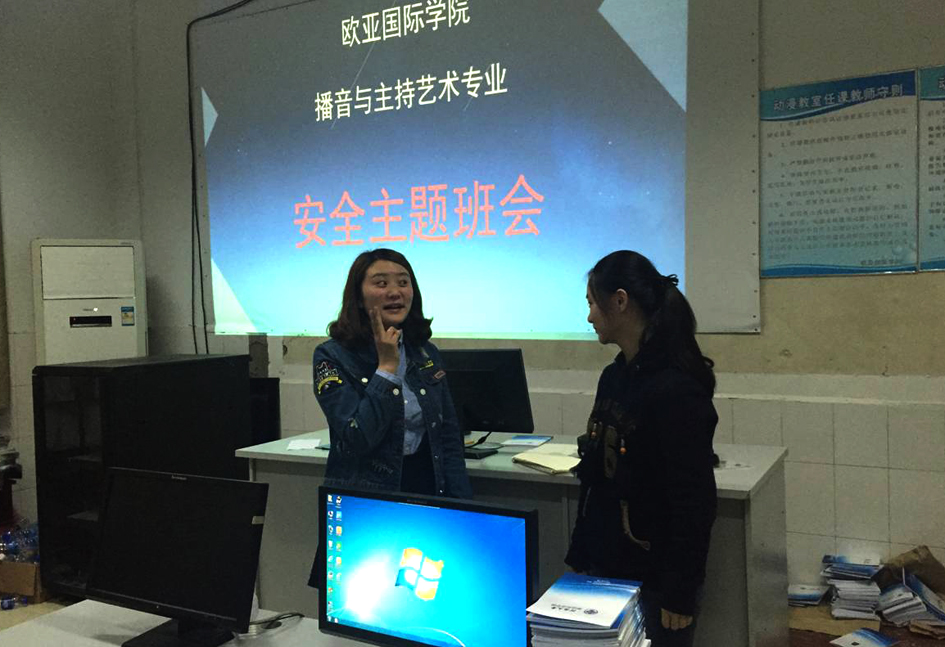 为增强同学们的安全防范意识,提高同学们的安全防范能力,全面普及校园安全常识,2015年4月5日晚,2014级播音与主持艺术在10号楼动漫教室开展了安全教育主题班会。