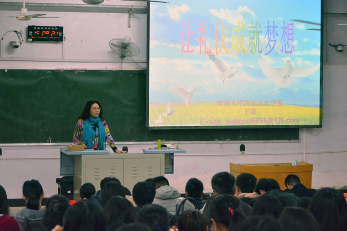 2015年3月19日下午,麻豆三级片 邀请历史文化学院王翠教授,在明伦校区十号楼128教室进行明德讲堂之礼仪报告。学院宿云龙老师主持,100多名学生聆听了报告。