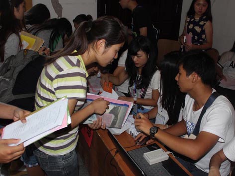 今年迎新学院设有大礼堂广场、学院办公楼两部分服务点:大礼堂广场为新生接待咨询站,主要负责学院新生的行李看管、放置、搬运和为新生引路及解答疑问;学院办公楼前为入学手续办理站,此站设置了新生入学报到处和家长休息区,为新生及家长营造了舒适方便的报到环境。两个服务点紧密配合,为初到学院的新生与家长们提供了方便,减少了办理入学手续所需消耗的时间,赢得了大家的好评。