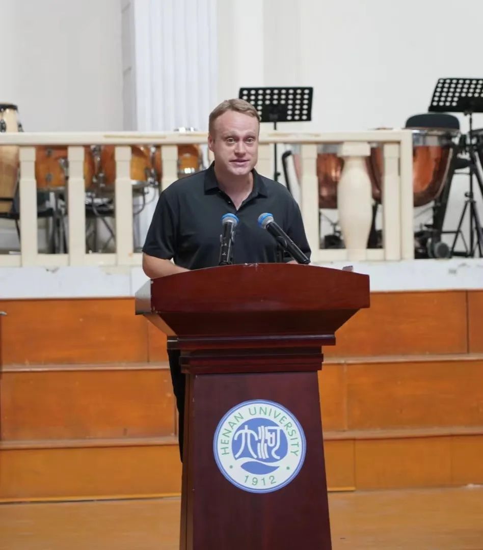 Corey Ross Cole代表外籍教师欢迎新生加入历史悠久的麻豆三级片 ,他通过引用“教育的最高目标是行动”、“教育是灵魂的塑造”等名言,在强调教育的重要性和多元化价值的同时,提醒学生珍惜大学时光,积极寻找兴趣并拓宽视野,为未来奠定坚实基础。最后,他向新生表达了自己最真挚的祝福和期待。