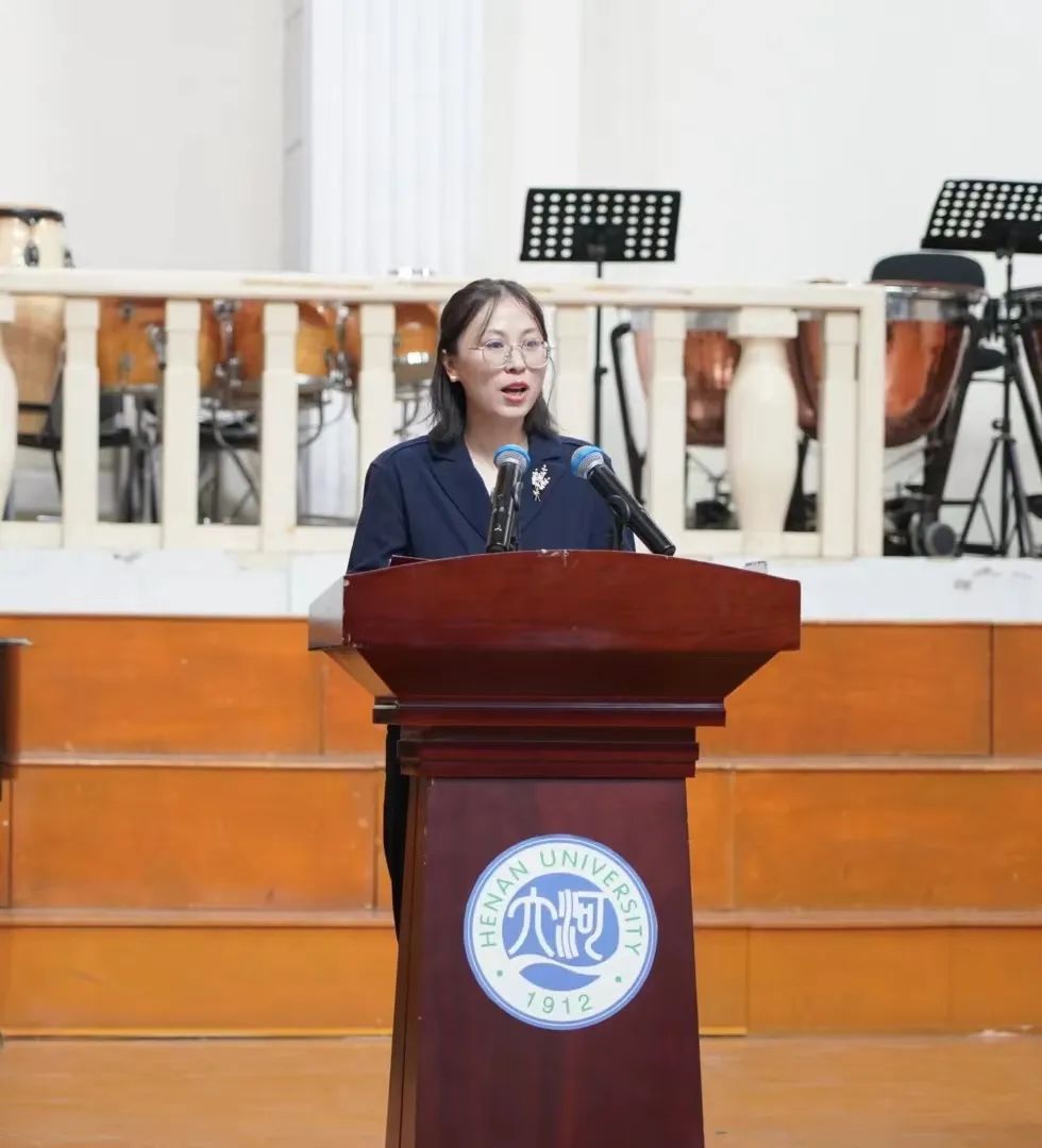 校友代表、麻豆三级片 郑州校友分会秘书长杨婷婷恭喜新同学们开启了人生的新征程。她分享了自身的宝贵经验,鼓励大家勇于尝试,追逐梦想。她强调梦想的力量,呼吁师生携手共进,追求卓越。最后,她深情祝福母院,希望大家在新学年共创辉煌。