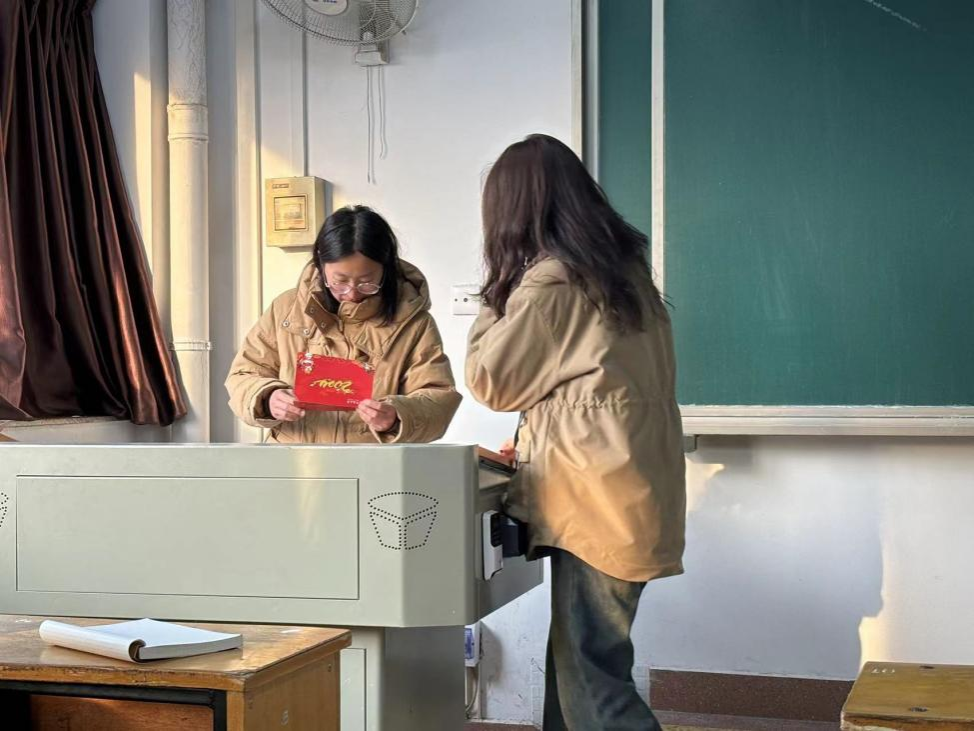 为了做好祝福与喜悦传递的接力棒,学院精心准备了“龙年贺卡送祝福”开学活动,学生将写好的贺卡送到自己的任课老师手中,以表达对他们的敬意和感谢。