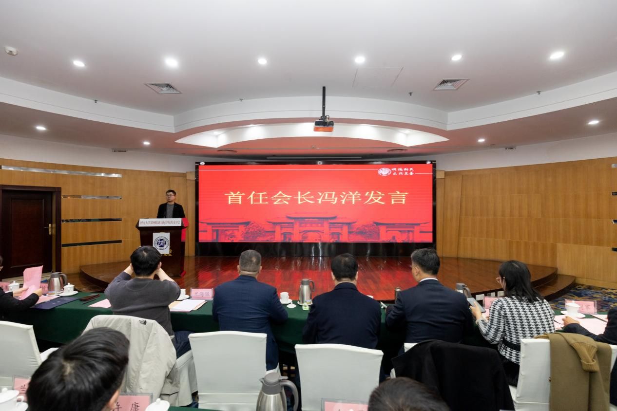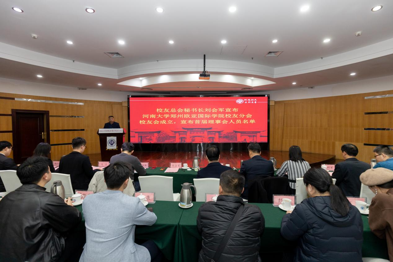 刘会军宣布麻豆三级片 郑州麻豆三级片 校友分会正式成立,并公布了第一届理事会成员名单:理事会会长冯洋,副会长李武涛、刘彦、程显雅、郭泽瀚、兰旭宁、许康,秘书长杨婷婷、副秘书长焦生康。