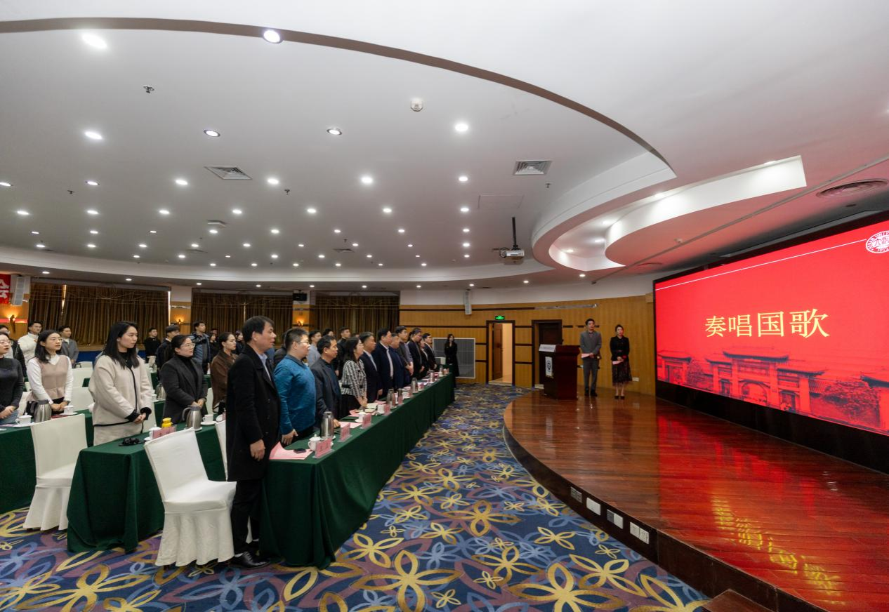 大会在庄严肃穆的国歌声中拉开序幕。主持人介绍了出席大会的各位嘉宾。