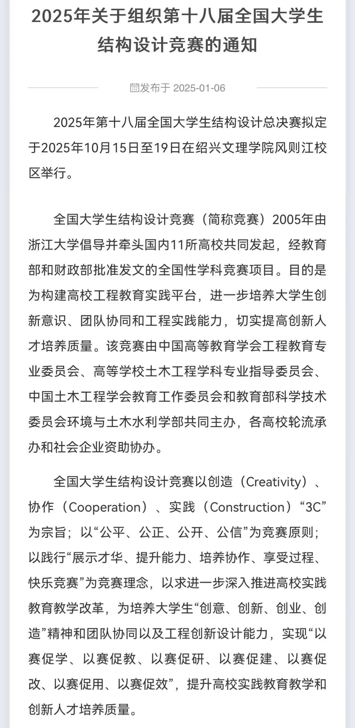 竞赛通知 | 2025年关于组织第十八届全国大学生结构设计竞赛的通知