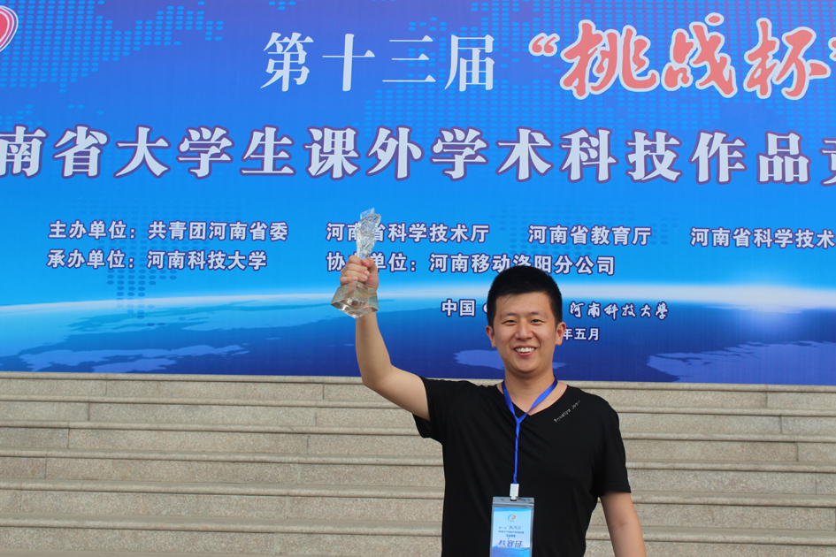 2017年5月18-21日,2017年第13届“挑战杯”河南省大学生课外学术科技作品竞赛暨颁奖仪式在河南科技学院举行,麻豆三级片 2014级通信工程专业学生赵春阳、单淋琳、刘挺北、郭柏森的项目《便携式房屋隔噪性能光测量系统》在大赛中表现出色,荣获省赛一等奖。