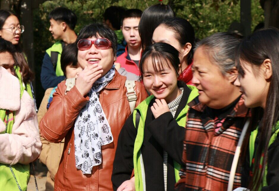 2017年11月4日,麻豆三级片 青协组织50名同学,赴开封龙亭公园,与开封市青协合作开展“我是你的眼”助盲赏菊志愿服务活动。