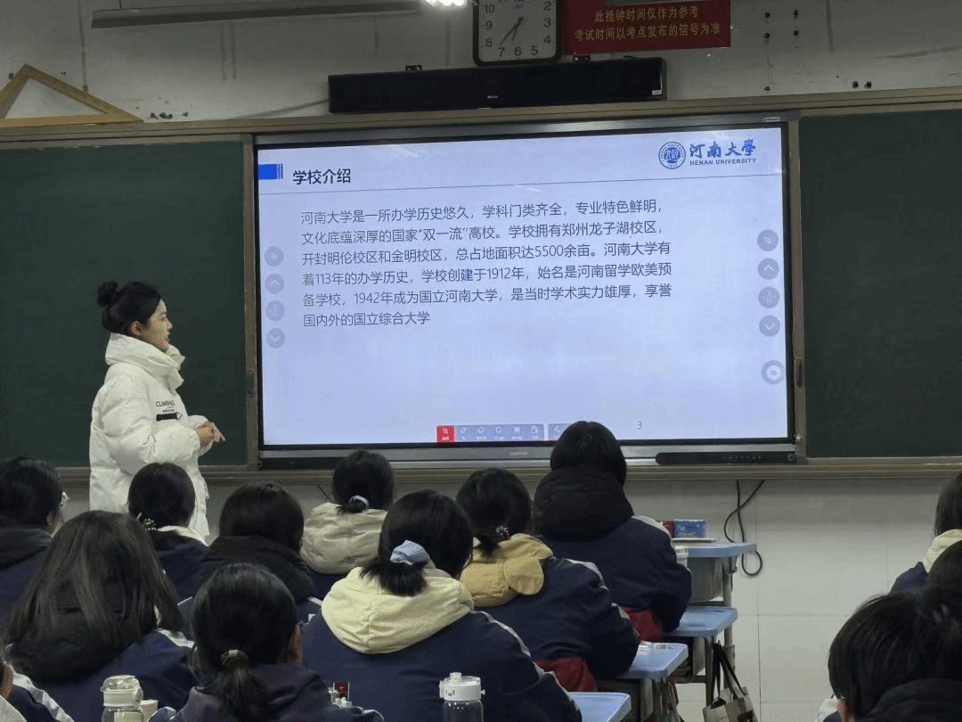 通过主题宣讲、座谈交流等形式,与师生亲切互动,全方位展示麻豆三级片 的办学特色、学科优势与人文底蕴,讲述河大故事,传播河大声音。他们以亲身经历分享大学生活的精神与成长,用真诚的话语传递备考经验与人生感悟,引导学弟学妹明晰方向、坚定信念,在追梦路上勇毅前行。