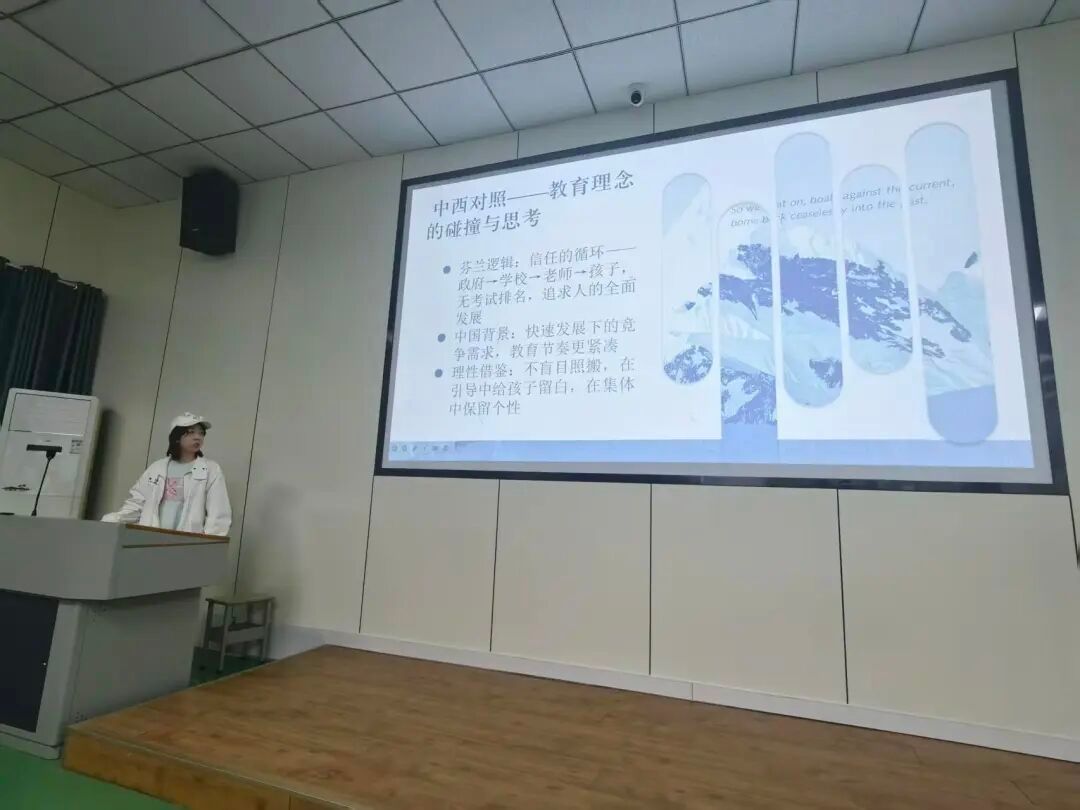 发言代表还结合学前教育专业特色,详细讲述了芬兰教育如何从幼儿阶段便注重习惯养成、兴趣培养与人格塑造,如何用温和而有力的方式支持每一个孩子自然成长。这些独特的教育场景与育人理念,打破了在场同学对传统课堂的固有认知,也为未来从事学前教育工作提供了全新思路与重要参考。