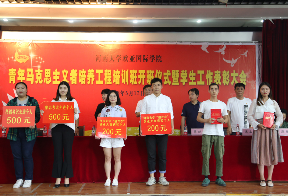 学院党委书记谷跃峰代表学院讲话,向“青马工程”培训班开班和受到表彰的集体和个人表示祝贺,向呕心沥血、热心培养学生成长成才的本届“我最喜欢的专业老师”的获得者商学院李煜等6位老师表示敬意。谷书记指出,自2007年团中央启动了“青年马克思主义者培养工程”之后,学院党委重视此项工作,支持和鼓励办好“青马工程”培训班,积极开展对青年马克思主义者的培养,引领全体青年听党话跟党走,引领广大青年不断学习和提高。谷书记对一年来的学生工作给予高度评价,学生工作取得了优越的成绩,体现立德树人的理念,表彰大会呈现出“三多、两高、一大”的特点,“三多”是亮点特色多、创新创意多、奖项类别多,“两高”是学生工作水平高、学生奖项层次高,“一大”是学院奖励力度大。谷书记希望大家珍惜荣誉、戒骄戒躁,不忘初心、继续前进,在实现人生理想的奋斗中,在百年名校建设世界一流大学的实践中,演绎出“欧亚学子”的青春旋律,奏响无愧于时代的凯歌。
