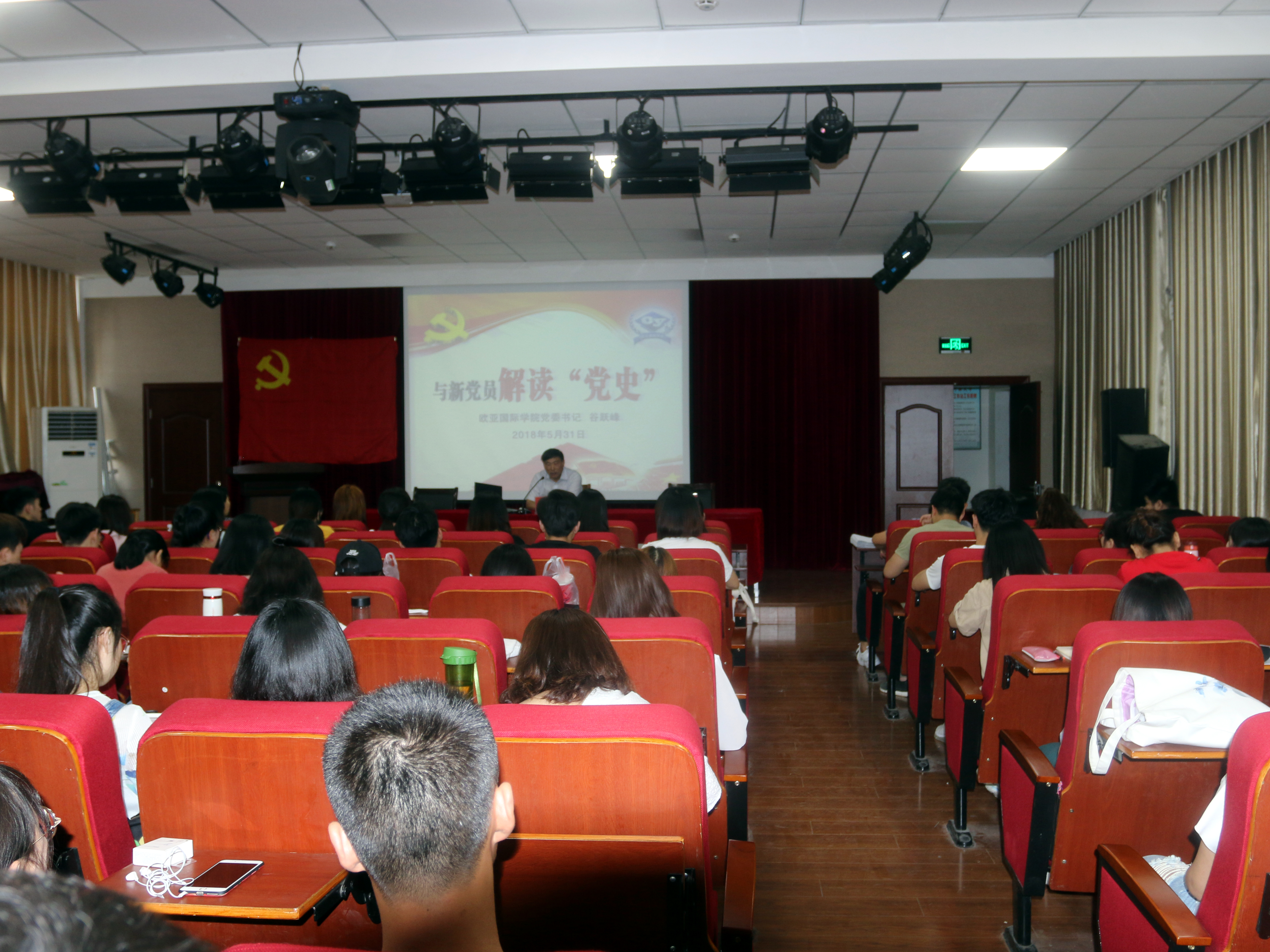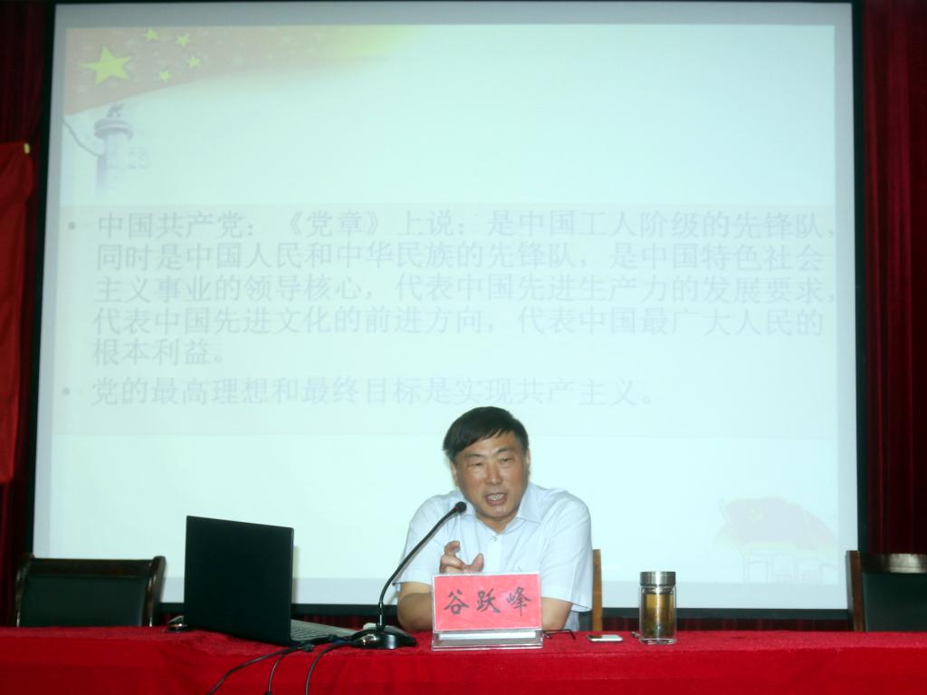 2018年5月31日下午,学院党委于二楼报告厅组织开展“新党员学习党史党章”专题党课学习活动,学院党委书记谷跃峰主讲。学院全体学生党员以及部分教职工党员参加了党课学习。