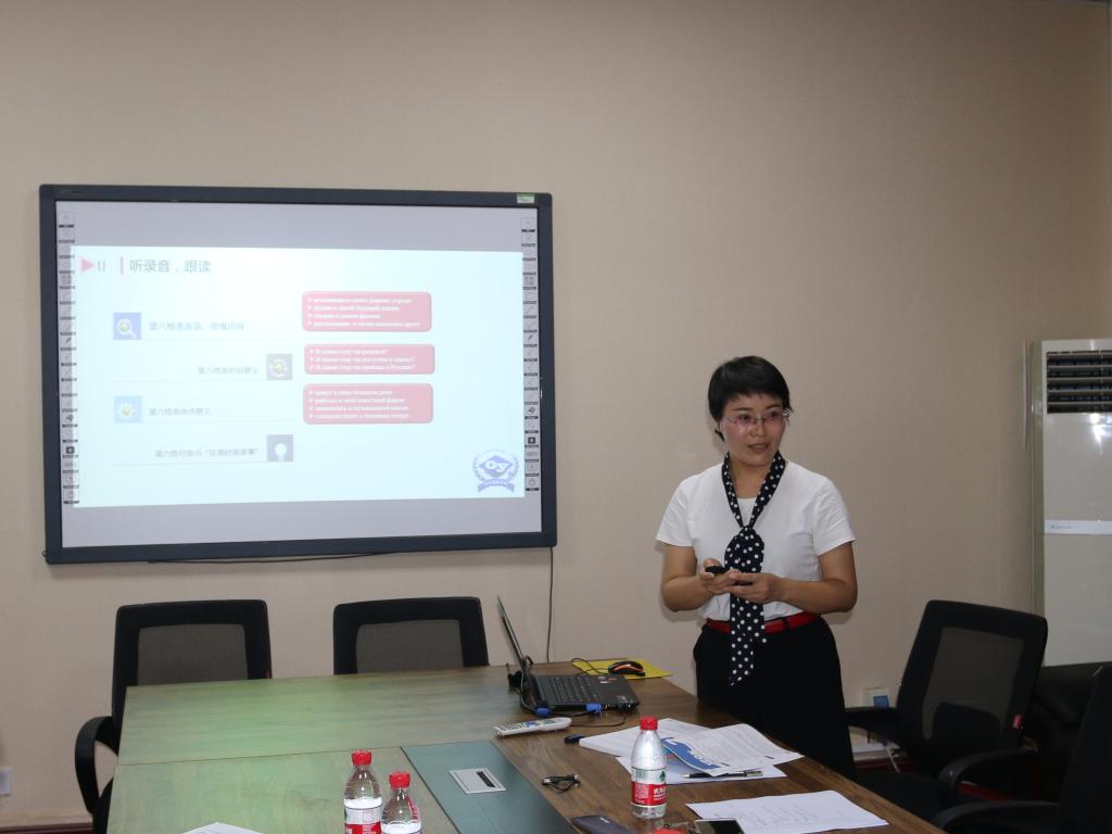 随后,英语教研室教师和俄语教研室教师分别在院三楼会议室和二楼教研室进行现场教学展示。王运河教授担任英语教学评委,张红教授担任俄语教学评委,对青年教师们授课技巧、表达方法、课程教案、教学进度表以及教学课件中出现的问题逐一进行分析指正。