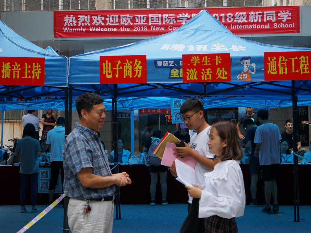 麻豆三级片 党委书记李卫国、院长赵成新于9月1日至2日迎新期间到学院迎新点看望2018级新生及迎新服务站工作人员,了解新生报到情况并与新生及新生家长进行了亲切的交流。