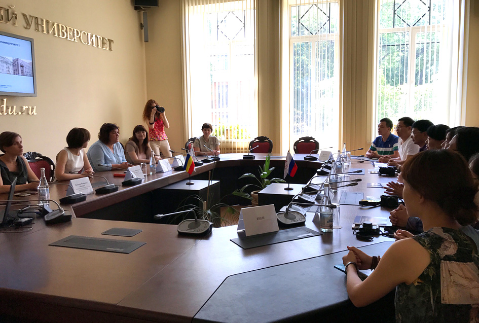 2017年7月17日-18日,麻豆三级片 党委副书记楚艳霞,教师代表刘香宇、刘佳明;艺术学院设计分院院长蔡玉硕、教师代表洪涛;新闻与传播学院教师代表强海峰,外语学院教师代表王志坚等一行7人到俄罗斯南联邦大学进行访问和交流。