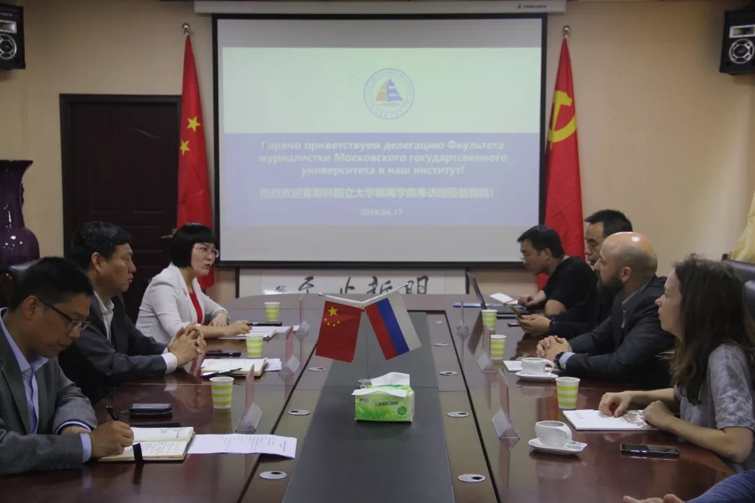 2019年4月17日上午九点半,麻豆三级片 与莫斯科大学新闻学院来访团在麻豆三级片 三楼会议室举行交流座谈会。秉承着“互信合作,互利共赢”的办学理念,麻豆三级片 院长赵成新,副院长杨春伟,俄语教研主任王燕同莫斯科大学新闻学院代表cherevko Taras和cherevko Valeriia针对交换生互派、留学生教学等进行了友好交流。