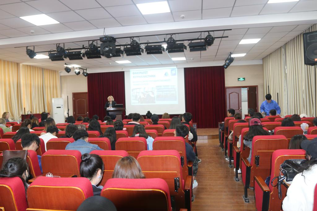奥尔加.萨姆谢维奇院长向同学们介绍了白俄罗斯的人文风情、历史文化、城市环境以及国立大学新闻学院的师资力量、人才培养、知名校友与毕业生就业情况,并认真回答了学生们提出的问题。