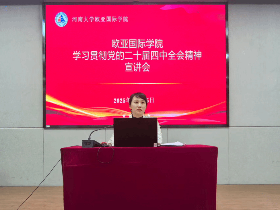 刘佳明进行总结。她强调,全院上下要把学习宣传贯彻党的二十届四中全会精神作为当前和今后一个时期的重大政治任务,将全会精神转化为推动学院改革发展的实际行动,争做政治坚定的“引路人”、业务精湛的“实干家”、勇于担当的“开拓者”,凝心聚力打造国际合作办学特色品牌,为学校“双一流”建设和中原大地中国式现代化建设贡献欧亚力量。