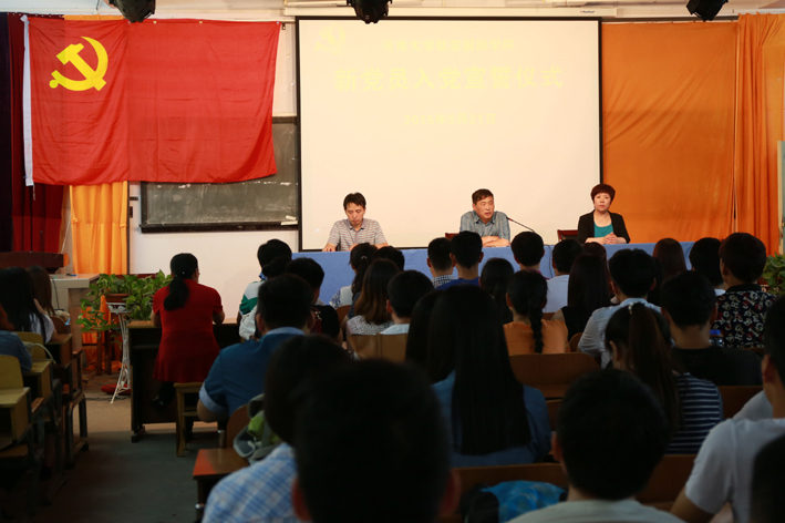 学院党委书记谷跃峰向新党员们表示祝贺,祝贺大家成为一名中国共产党党员。谷书记指出了新党员进行入党宣誓的必要性和重要性,强调指出“志愿加入中国共产党,对党忠诚”是一种理想追求,“拥护党的纲领,遵守党的章程,履行党员义务,积极工作”是一种庄严承诺,“为共产主义事业奋斗终身,随时准备为党和人民牺牲一切”,是一种人生信仰。他要求全体新党员要始终坚定理想信念,进一步加强党章、党史的学习,全面提高自身科学文化素质,要在在今后的学习、生活、工作中发挥党员的先锋模范作用,,牢记全心全意为人民服务的宗旨,按照党章要求自觉履行党员义务,真正从组织上、思想上、行动上做一名真正的共产党员。