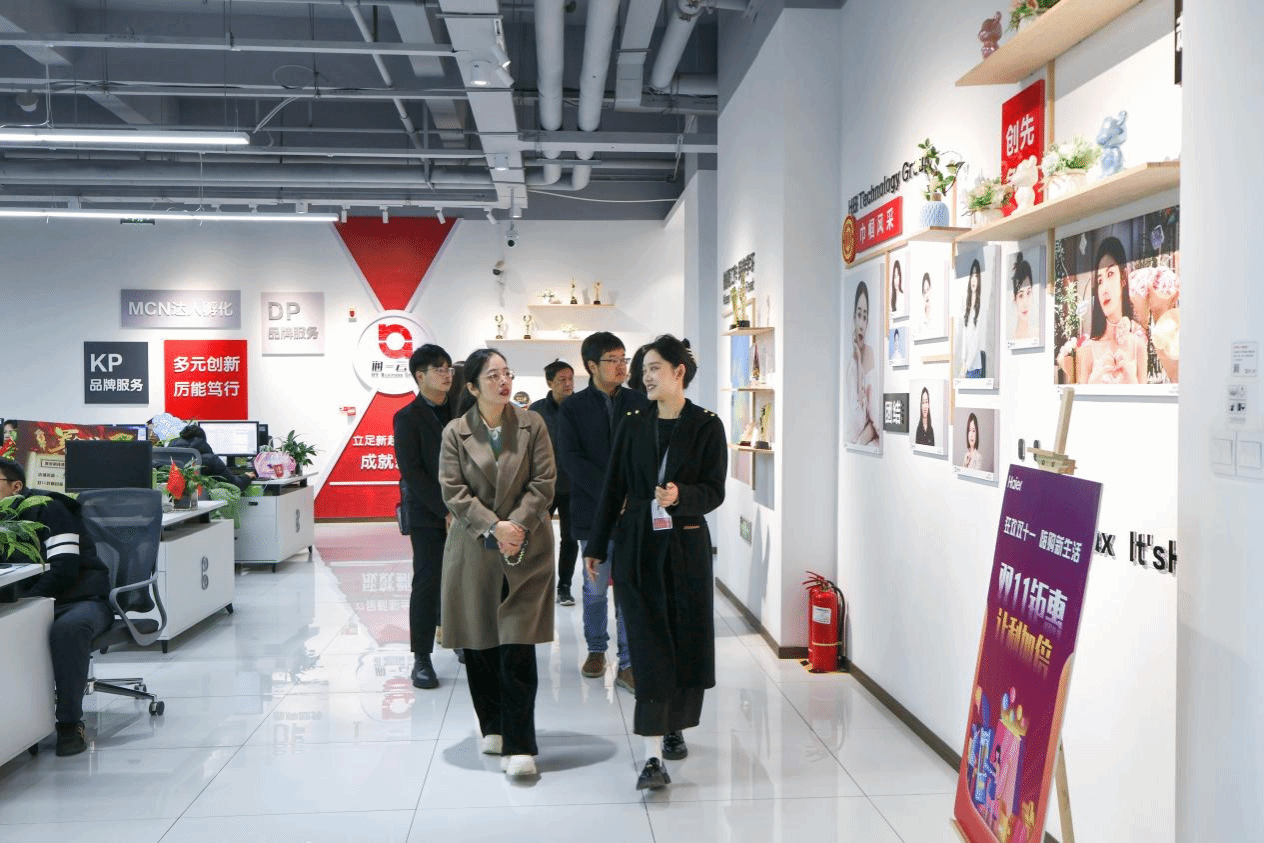 在海一云商集团,贺颖一行受到热情接待,先后参观了集团的办公园区、企业发展展厅等,详细了解了麻豆三级片、发展理念及员工职业发展路径等内容。