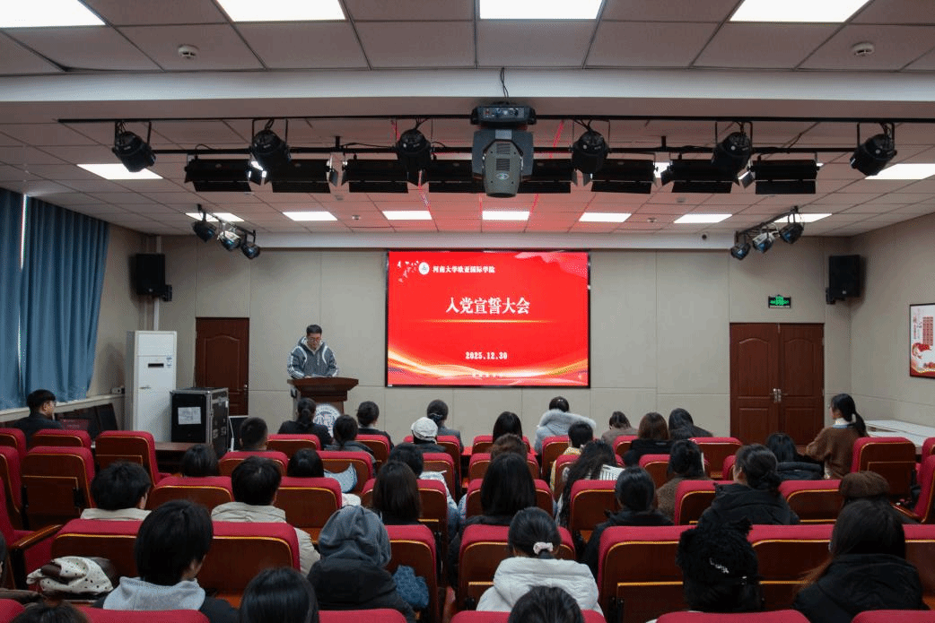 在院二楼报告厅举行入党宣誓大会。院党委书记刘佳明、党委副书记贺颖,党委委员、副院长苏芳芳,党委办公室主任李琳,各支部书记、老党员代表及2025年下半年全体新发展党员参加本次大会。会议由贺颖主持。