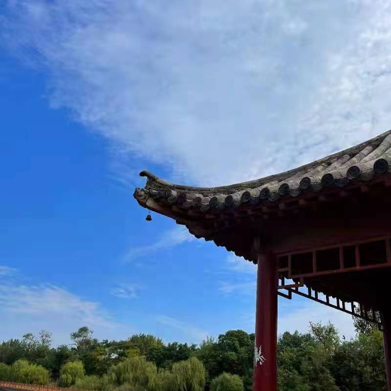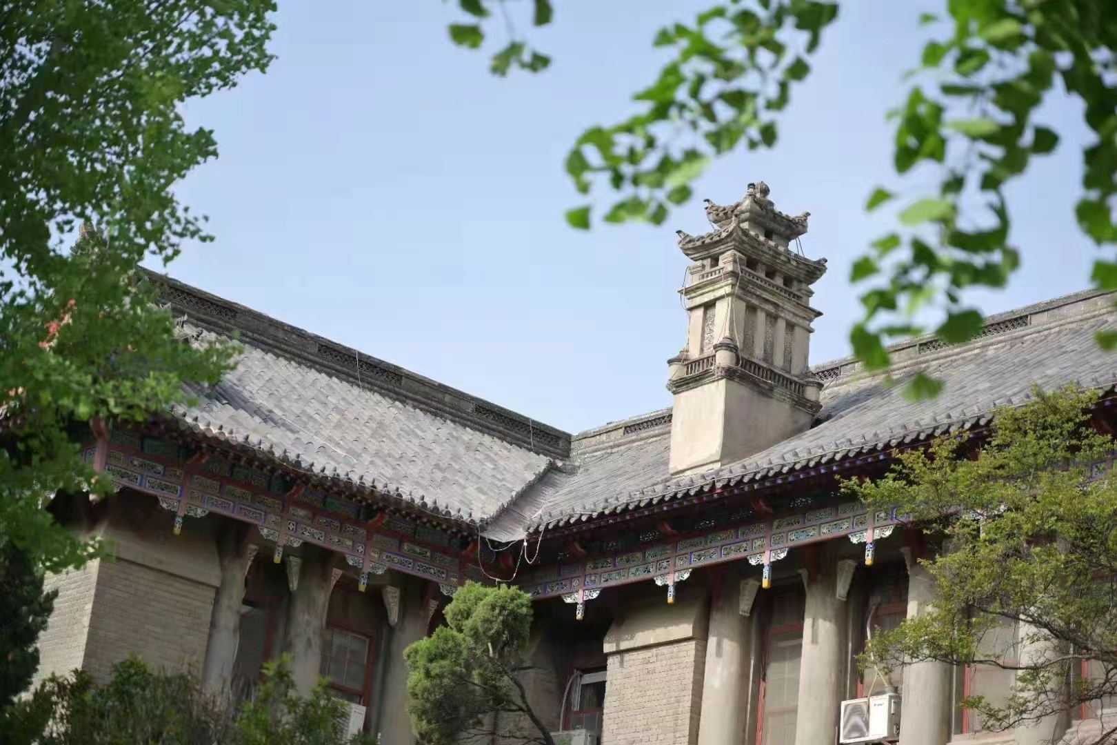 上有筒板瓦,花脊走兽,下有斗拱承檐,椽飞起翅。仿佛照应着“明德新民,止于至善”校训。