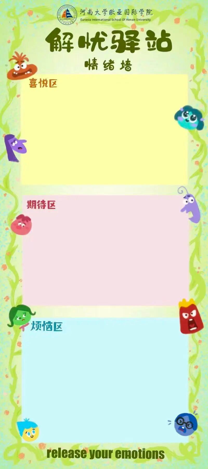 参与方式:分享一段自己克服困难或化解情绪的故事,粘贴在展板的“故事分享区”。