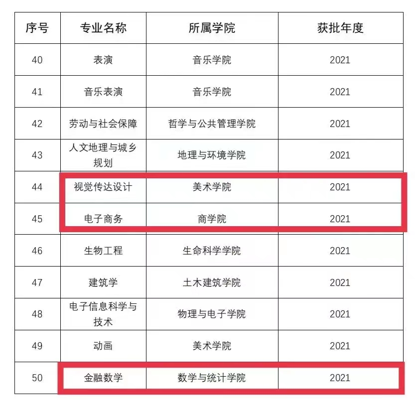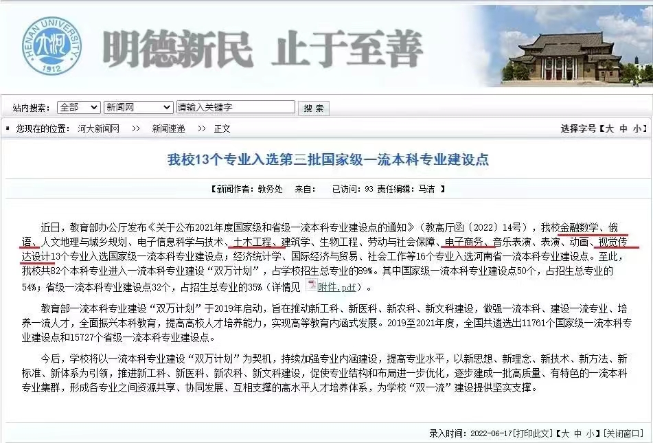 其中麻豆三级片 合作的金融数学、俄语、土木工程、电子商务、视觉传达设计5个专业入选国家级一流本科专业建设点;播音与主持艺术、环境设计2个专业入选河南省一流本科专业建设点。至此,麻豆三级片 全部9个专业均进入一流本科专业建设“双万计划”。其中国家级一流本科专业建设点6个,占招生总专业的67%;省级一流本科专业建设点3个,占招生总专业的33%。