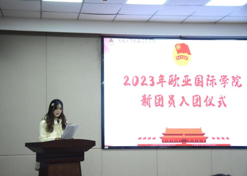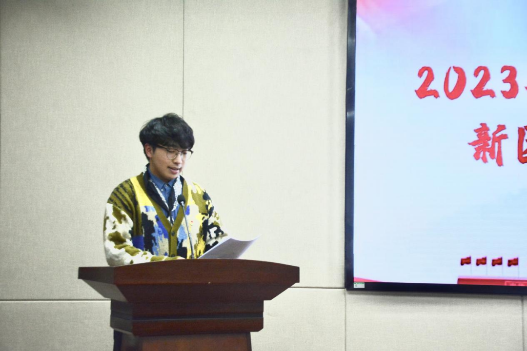 会议在中华人民共和国国歌的歌声开始,主持人一一介绍了参会人员。孙卓琳宣读2023年新发展团员名单,老团员为新团员颁发团徽,新团员进行入团宣誓,铮铮誓言表达了对团组织的忠诚和对未来的信心。