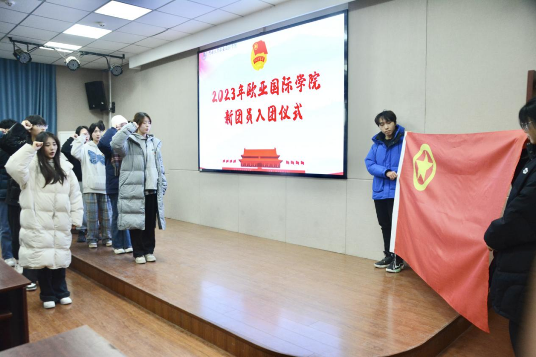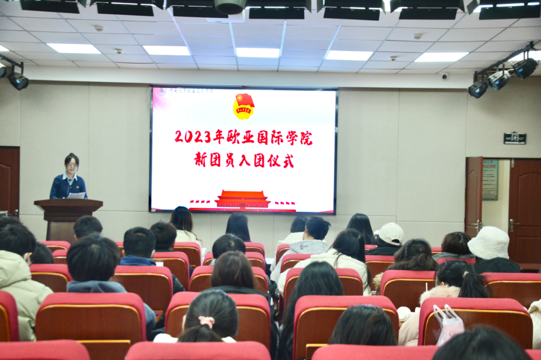 2023年12月21日中午,麻豆三级片 2023年新团员入团仪式在学院二楼正式举行。麻豆三级片 团委副书记李琳、院团委副书记(学生)孙卓琳、院团委副书记(学生)王炜盈、院团委副书记(学生)高畅、优秀团员代表及新入团团员出席该仪式。会议由2023级俄语专业董沐言主持。
