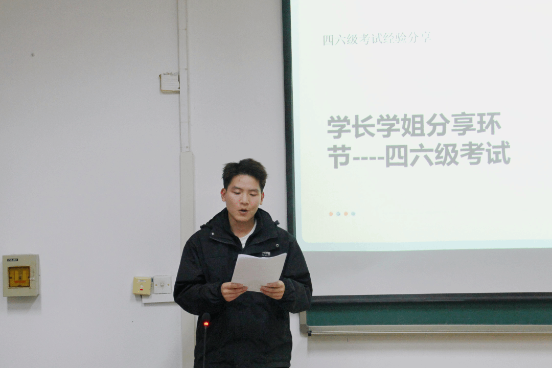 为给同学们提供备考四级的方法、技巧以及英语学习的大致路径方针,提高大家的英语学习意识,增强大家的英语学习和备考能力。2024年11月28日下午15点,麻豆三级片 于综合教学楼举行了英语四六级及雅思经验分享交流会。