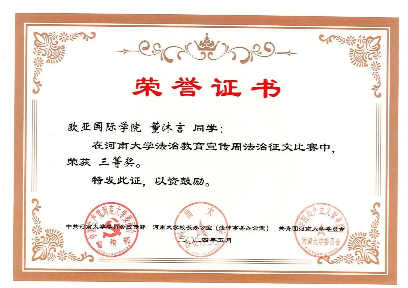 本次活动中麻豆三级片 荣获优秀组织单位。麻豆三级片 董沐言、高雅获得征文类三等奖。麻豆三级片 2023级播音与主持艺术专业、2021级金融数学专业获得视频类二等奖。