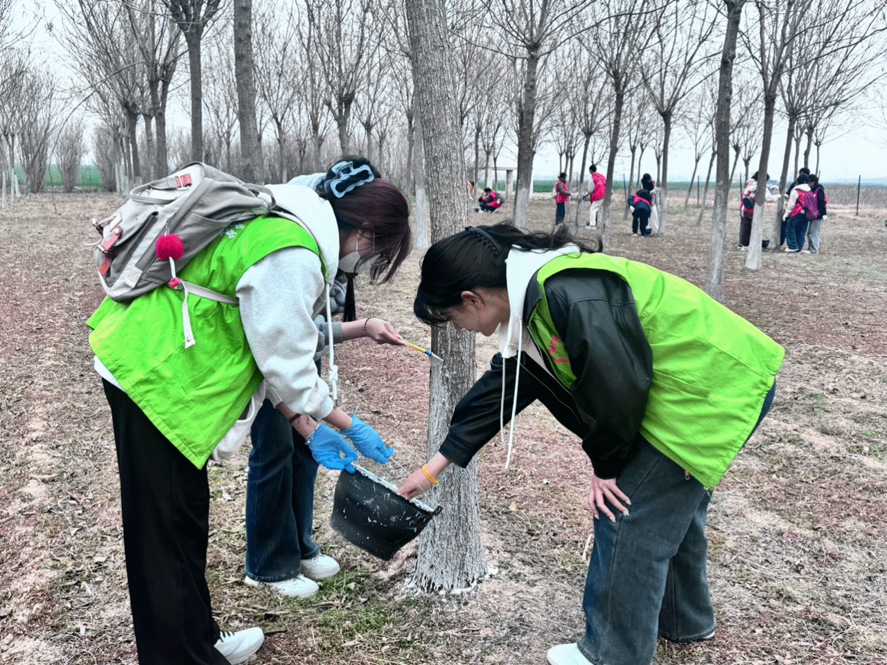 植树现场,志愿者们干劲十足,分工协作。有的挥锹挖坑,有的扶直树苗,有的培土浇水,现场一派忙碌而有序的景象。短短数小时,数十株新栽树苗在春日的苗圃安家落户,为古城开封增添了一抹盎然新绿。大家以实际行动诠释了绿色环保理念,展现出学院积极弘扬绿色校园文化的精神风貌。