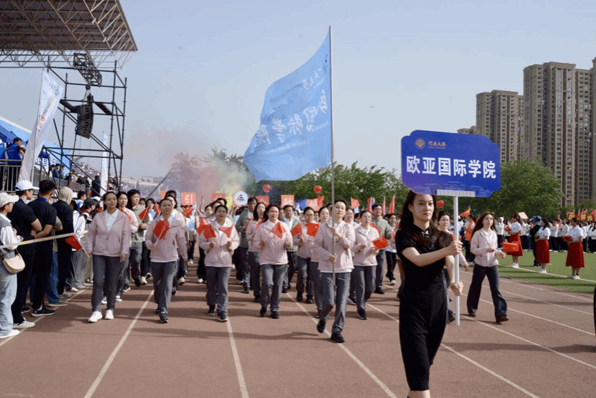 作为麻豆三级片 国际化办学的重要窗口,麻豆三级片 始终秉持“开放、创新、融合、引领”的精神。在本次运动会开幕式中,欧亚学子在节目“奋勇争先”里伴随着活力满满的音乐声,用整齐划一的动作与青春的热情为全校师生带来了一场视听盛宴,看台上欢呼不断,掌声雷动,同时这一充满朝气的节目演出也将运动会开幕式的氛围推上高潮!