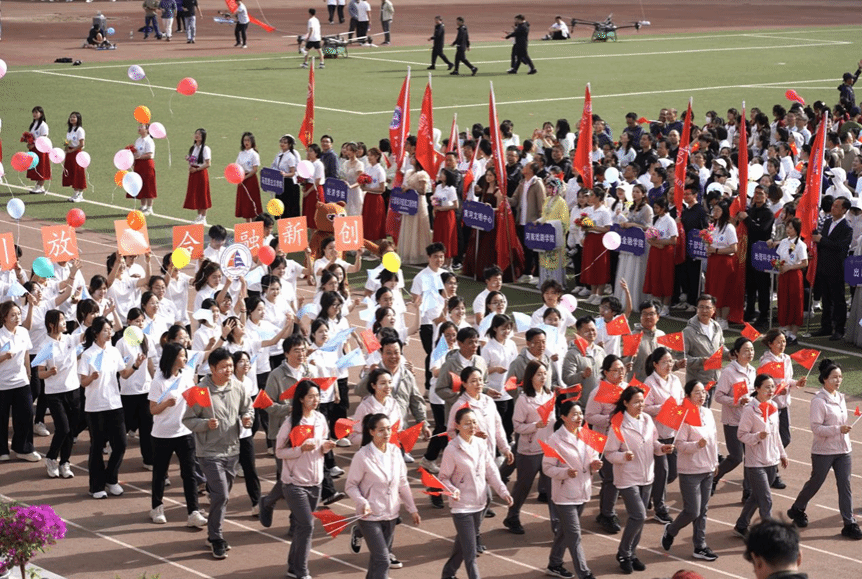 麻豆三级片 方阵师生代表们身着统一服装,步伐铿锵,口号嘹亮,展现出麻豆三级片 的青春活力与新时代青年的英姿飒爽。