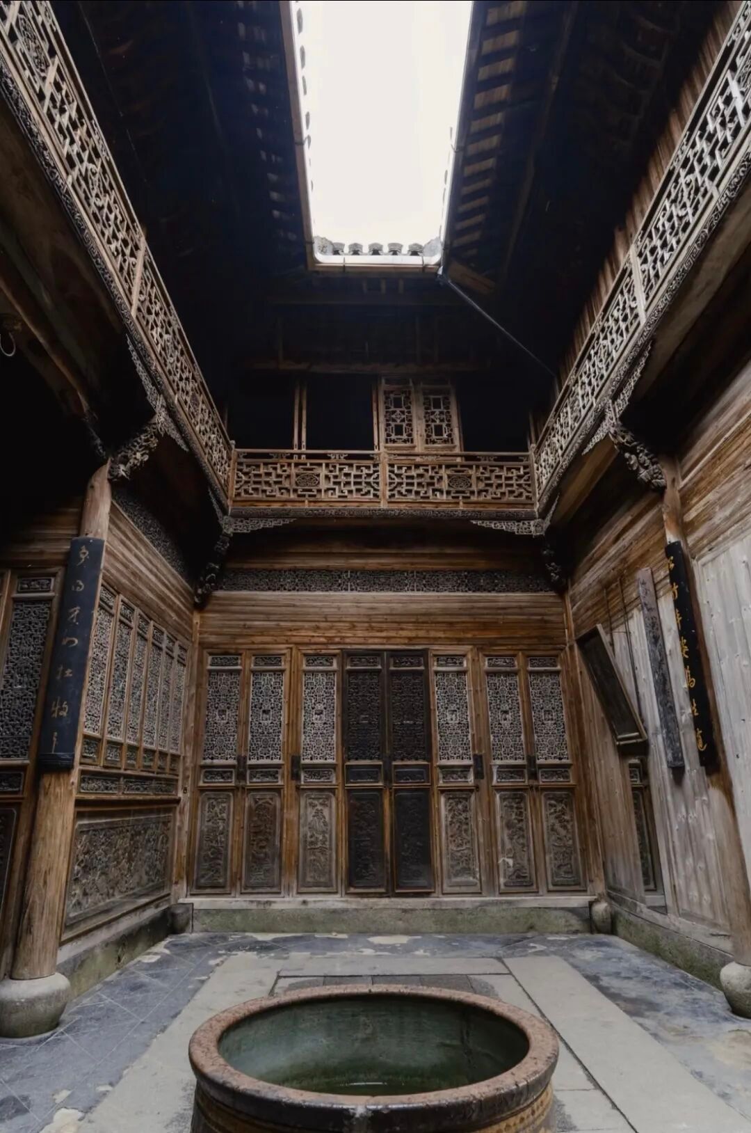 千年木作藏风雅,一雕一琢见匠心。卢村木雕楼以“精细”闻名,门窗扇格、梁柱雀替皆为木雕精品,人物花鸟栩栩如生,山水典故层次分明,刀工细腻如笔描墨画。木质纹理与雕刻艺术交融,明暗之间尽显东方审美意趣,为视觉设计带来传统工艺与现代美学的碰撞灵感。