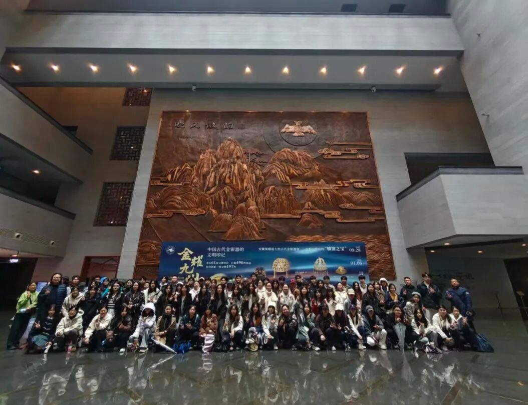 琼楼藏珍馐,文脉贯古今。安徽省博物院的馆藏跨越千年,青铜器的斑驳锈迹、陶瓷器的釉色流光、书画作品的笔墨意境,皆为江淮文化的缩影。同学们跟随着两位老师更深入的了解到从徽州三雕到古徽州书画,从史前玉器到明清工艺,每一件文物都承载着历史的温度,让设计学子在触摸文明中汲取创意养分。