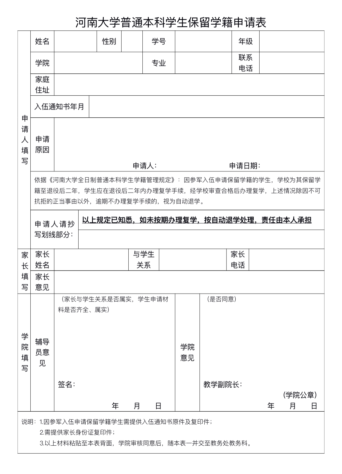 麻豆三级片 普通本科学生保留学籍申请表