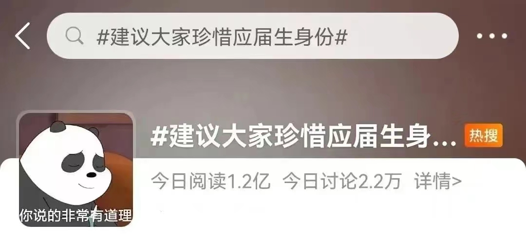 近⽇#建议⼤家珍惜应届⽣身份#的话题冲上热搜